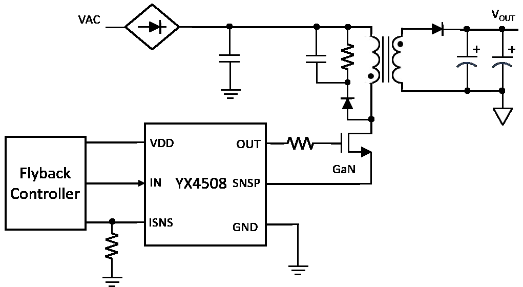 The YX4508 is a high performance single-channel low side gate driver designed for use in high-speed GaN FET and Si MOSFET applications. Its low propagation delay and high peak current make it suitable for a range of applications including Flyback, LiDAR, time-of-flight, facial recognition, and power converters. The YX4508 can deliver high peak current up to 4A source and 8A sink into capacitive load. It also supports current sensing out to monitor the FET current during operation. The YX4508 features under voltage lockout (UVLO) and over temperature protection help ensure the device operates safely and reliably. The YX4508 is available in an industry standard and small 6-lead DFN 2mmx2mm package with exposed pad and low parasitic inductance and resistance, suitable for high frequency power systems.