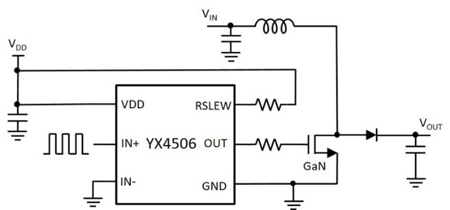 The YX4506 is a high performance single-channel low side gate driver designed for use in high-speed GaN FET and Si MOSFET applications. Its low propagation delay and high peak current make it suitable for a range of applications including LiDAR, time-of-flight, facial recognition, and power converters. The YX4506 can deliver high peak current up to 4A source and 8A sink into capacitive load. It also supports turn on slew rate control of gate with a single external resistor pulled up to VDD for EMI performance and switching loss trade off design. The YX4506 features under voltage lockout (UVLO) and over temperature protection help ensure the device operates safely and reliably. The YX4506 is available in an industry standard and small 6-lead DFN 2mmx2mm package with exposed pad and low parasitic inductance and resistance, suitable for high frequency power systems.